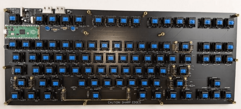 I created an 87-key mechanical keyboard with a traditional layout, constructed from three layers of FR-4 PCB material. While using PCB material for the entire case might seem unconventional, it is ideal—it’s sturdy, easy to customize, and very easy to clean. The keyboard’s unique aspect is its open-source firmware, written in the Arduino IDE, running on a Raspberry Pi Pico.