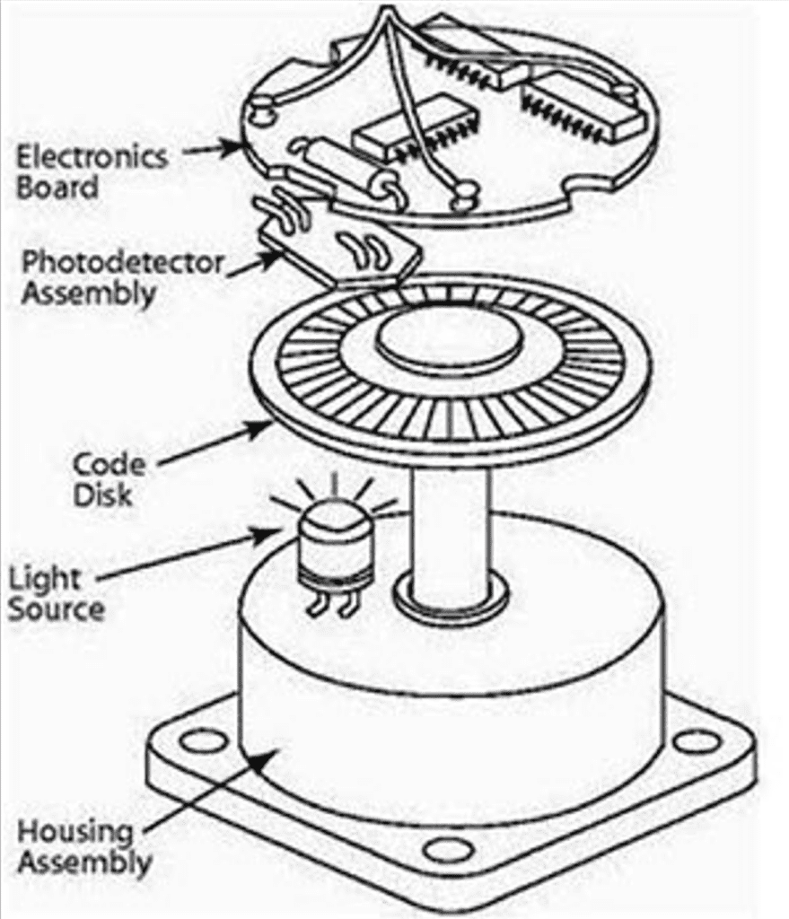Encoders use different types of technologies to generate signals, including mechanical, magnetic, resistive, and optical – with optical being the most common. In optical sensing, the encoder provides feedback based on the interruption of light.