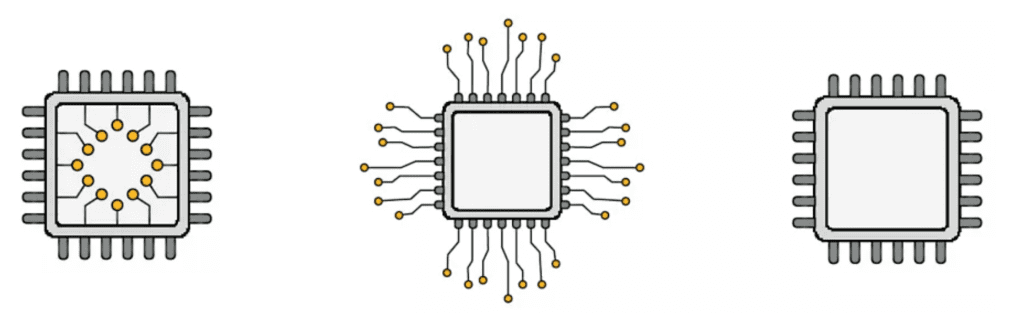 - Through-Hole Mounting (THM): e.g., DIP (Dual In-line Package), PGA (Pin Grid Array).